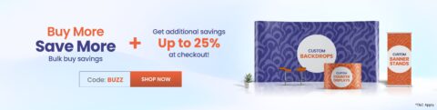 This coupon is valid on Table Covers, Banners, Stand, Displays, and More