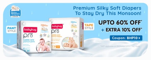 Valid on Babyhug Pro Diaper Range (Max. discount of ₹2500 will be offered. Also get free shipping)